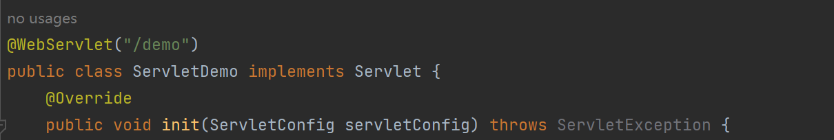 定义一个类,用来实现 Servlet 接口,并重写接口中的所有方法。