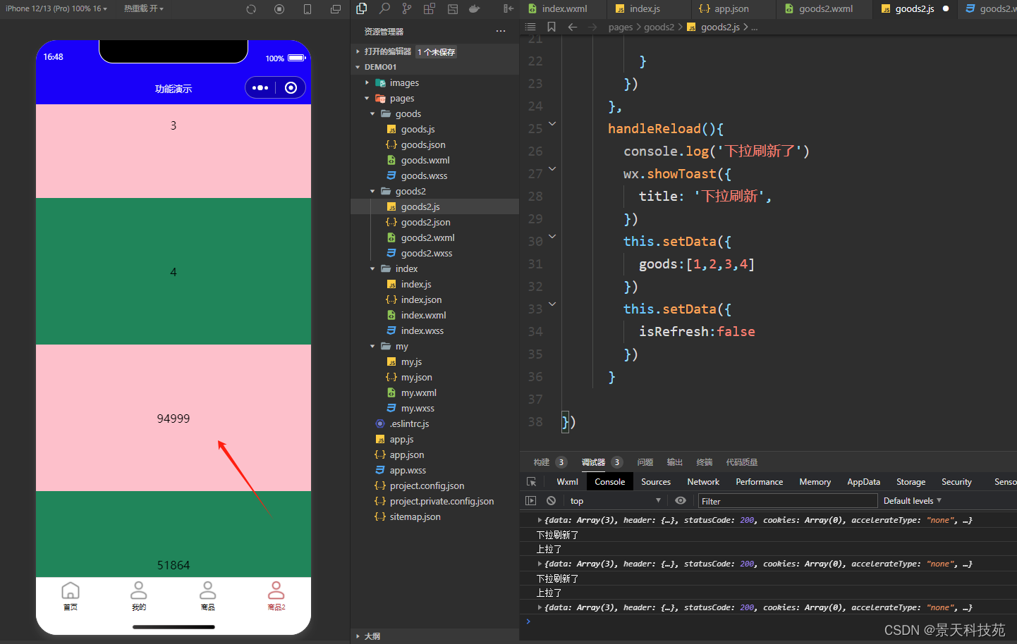 上面我们讲到了下拉加载更多数据,如果我们想恢复到最初的默认怎么办,此时就用到了下拉刷新
