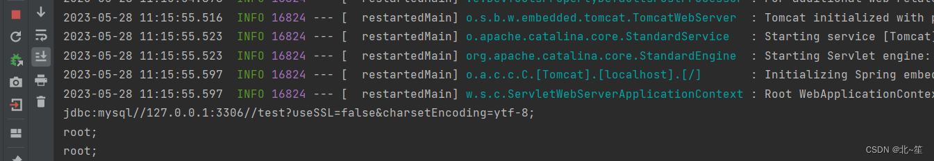 }默认日志输出级别 清除掉配置文件中的日志设置,观察控制台输入的日志级别。
