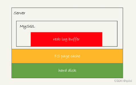 InnoDB由一个后台线程,间隔1S把redo log buffer中的日志,调用write写到文件系统的page cache,调用fscyn持久化到磁盘中。