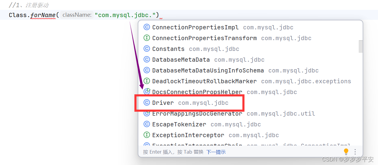 3、如果以后听到需要弄一个 MySQL 的驱动,其实就是搞一个 MySQL 对应 JDBC 的实现类。搞一个 " jar 包 " ,它里面有很多的实现类,拿过来直接用就行。
