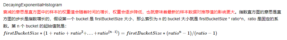 将采集到的数据放入Decaying Exponential Histogram(衰减指数直方图)的 bucket 中,bucket 存放的是权重值,这样随着时间的推移就会生成一个分布图。衰减直方图参考下面算法分析。