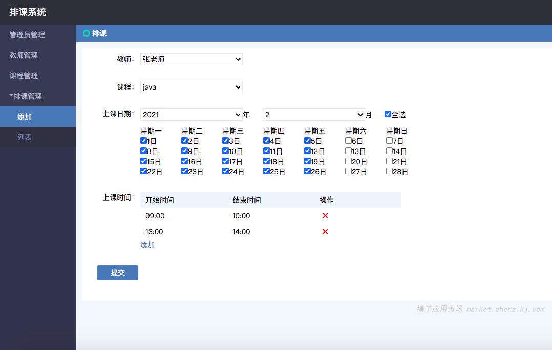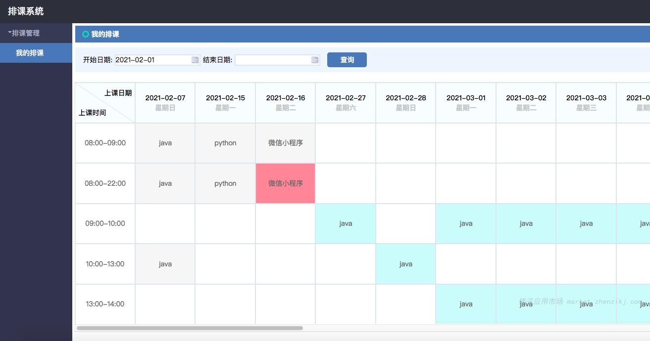 适用场景:适用无规律或定期排课场景,比如培训教育或预约课时等。
