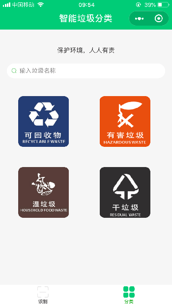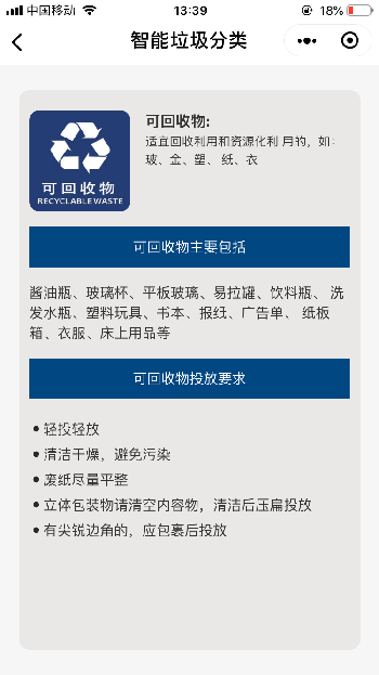 智能垃圾分类小程序,可以作为商业用,也可以作为毕设用。使用AI技术,通过拍照智能识别垃圾从而进行垃圾分类。