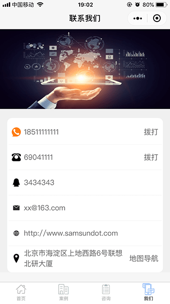 所有内容都可以通过配置完成,比如轮播图、新闻、企业信息、封面等等。